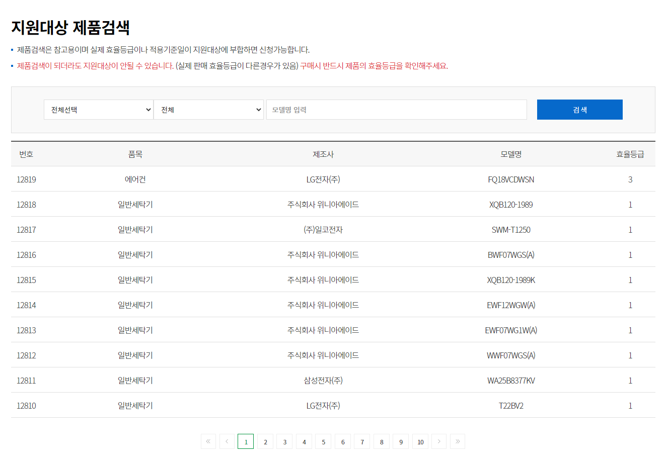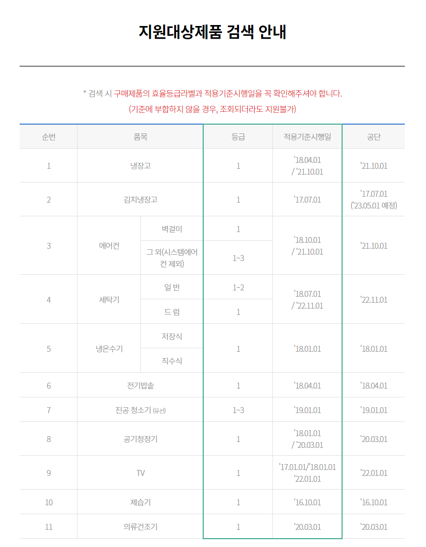 단, 제품검색이 되더라도 지원대상이 안될 수가 있다는 점 유의해주시기 바랍니다.