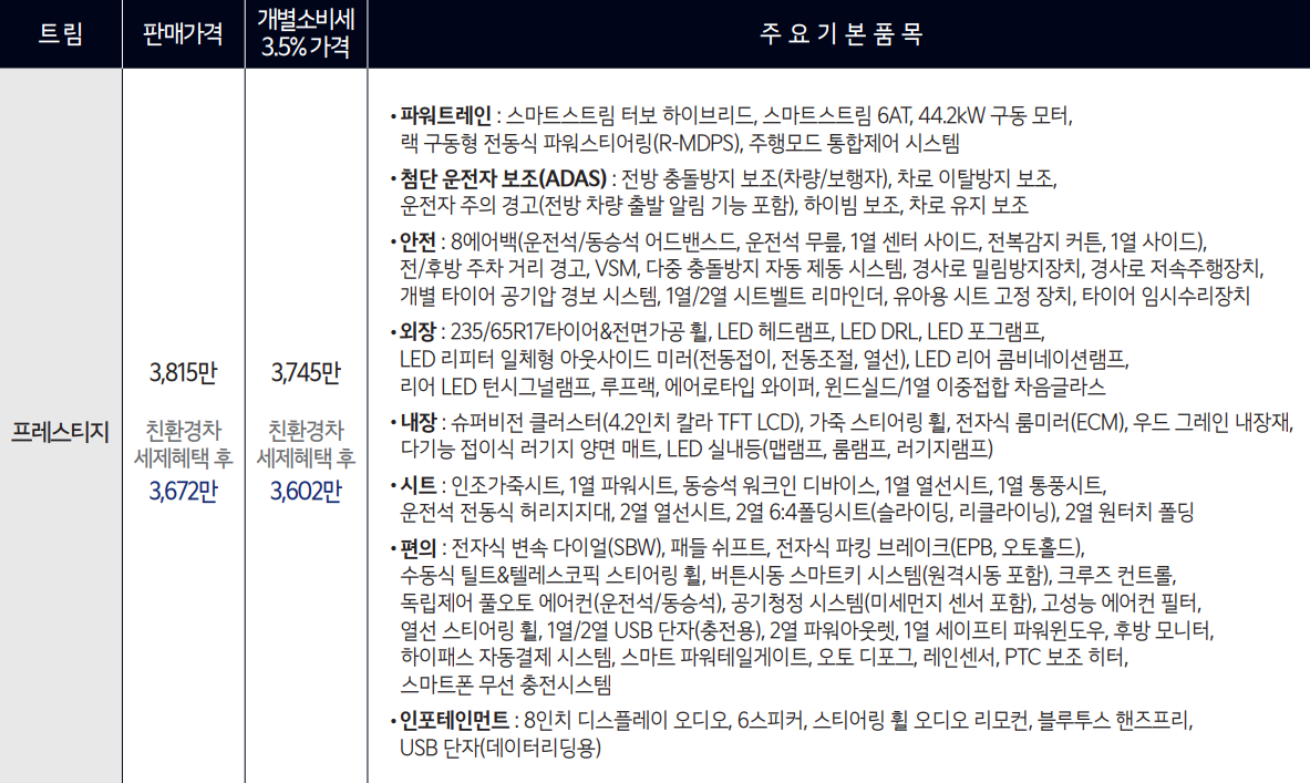 그리고 가격 부분도 친환경차 세제혜택을 적용받으면