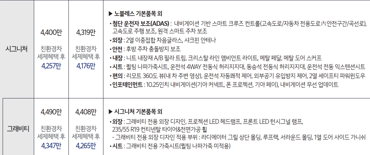 *그래비티의 경우 시그니처 트림 속의 특별 케이스라고 생각하시면 됩니다.