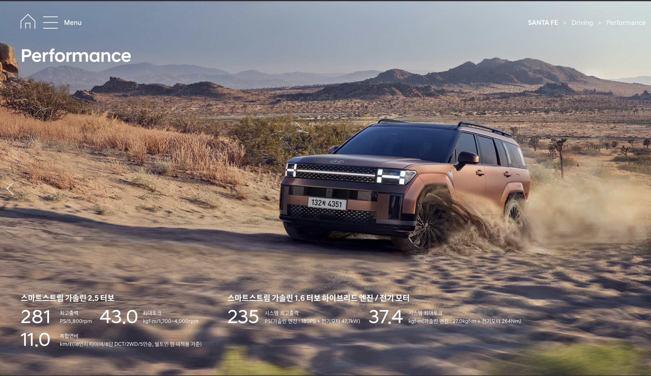 | 구분 | 1.6터보 하이브리드(2륜) | 2.5터보 가솔린 |